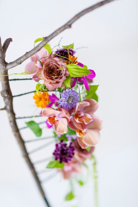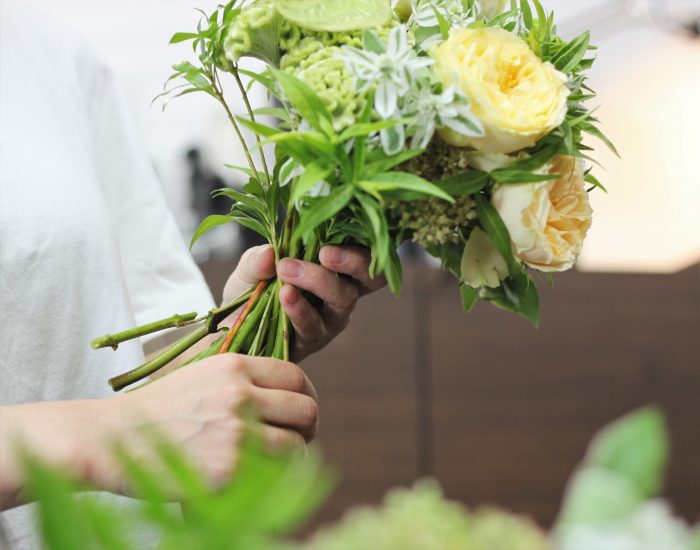 レッスンの内容は季節のお花をセレクトし、手で束ねるブーケや、吸水スポンジを使ってのアレンジ等を作ります。